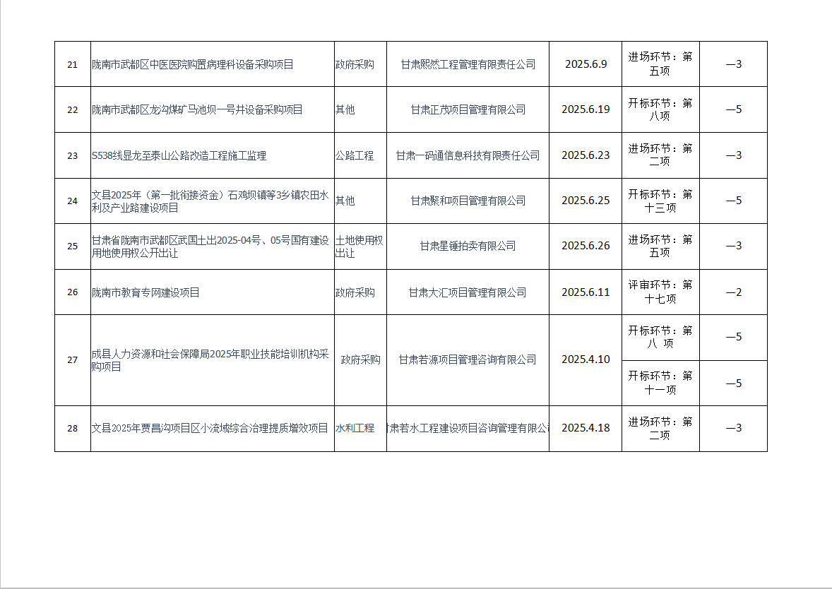 隴南市公共資源交易中心關(guān)于2025年第二季度