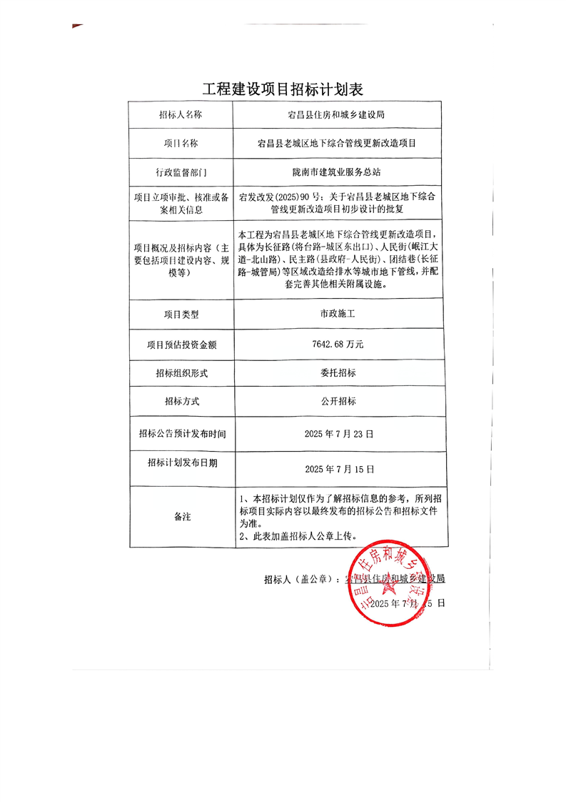 宕昌縣老城區(qū)地下綜合管線更新改造項目