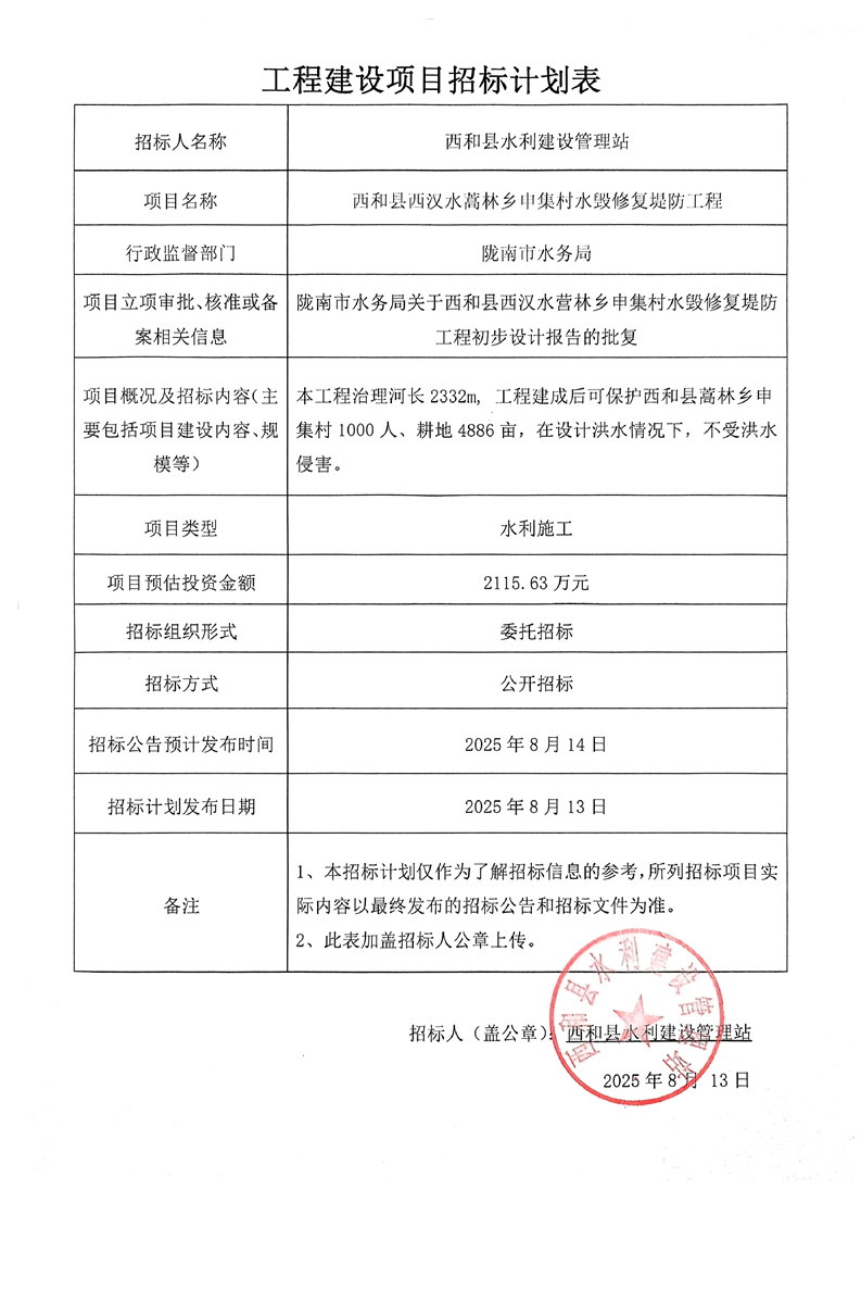西和縣西漢水蒿林鄉(xiāng)申集村水毀修復(fù)堤防工程