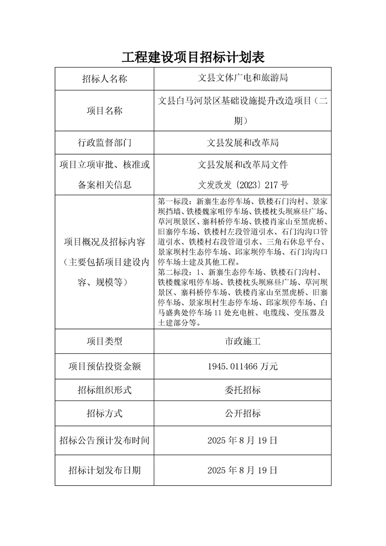 文縣白馬河景區(qū)基礎設施提升改造項目(二期)