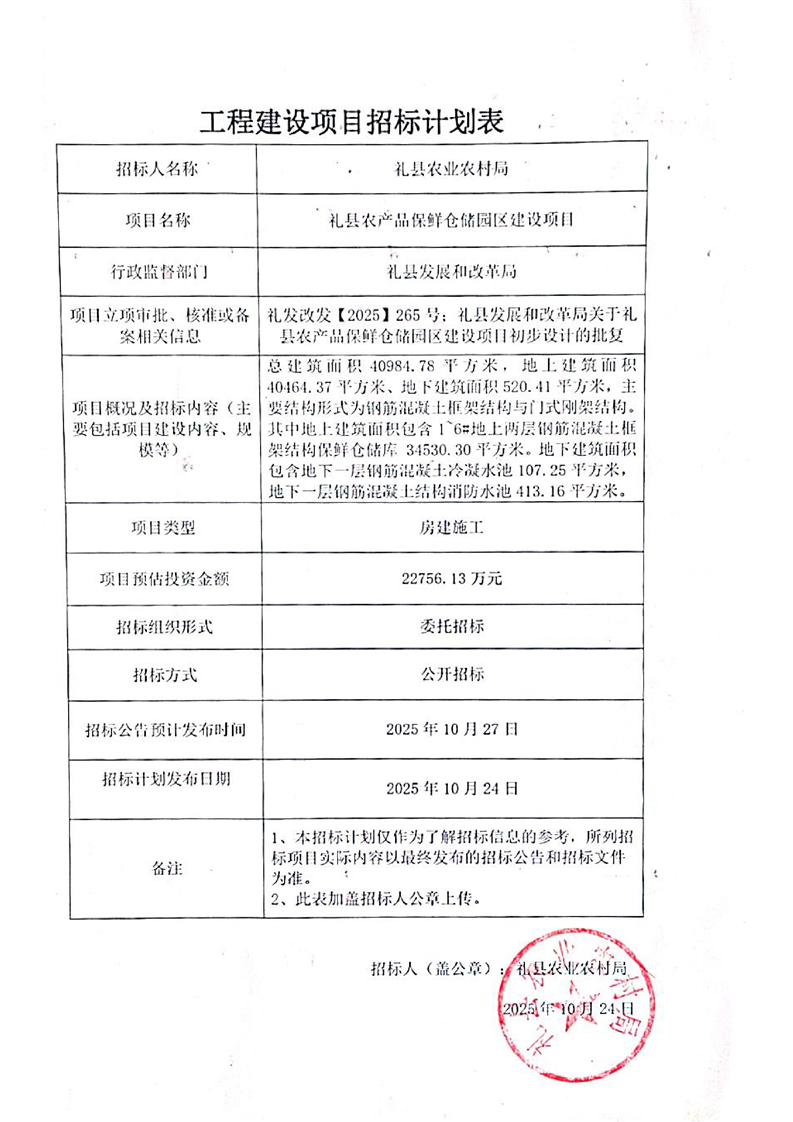 禮縣農(nóng)產(chǎn)品保鮮倉儲(chǔ)園區(qū)建設(shè)項(xiàng)目