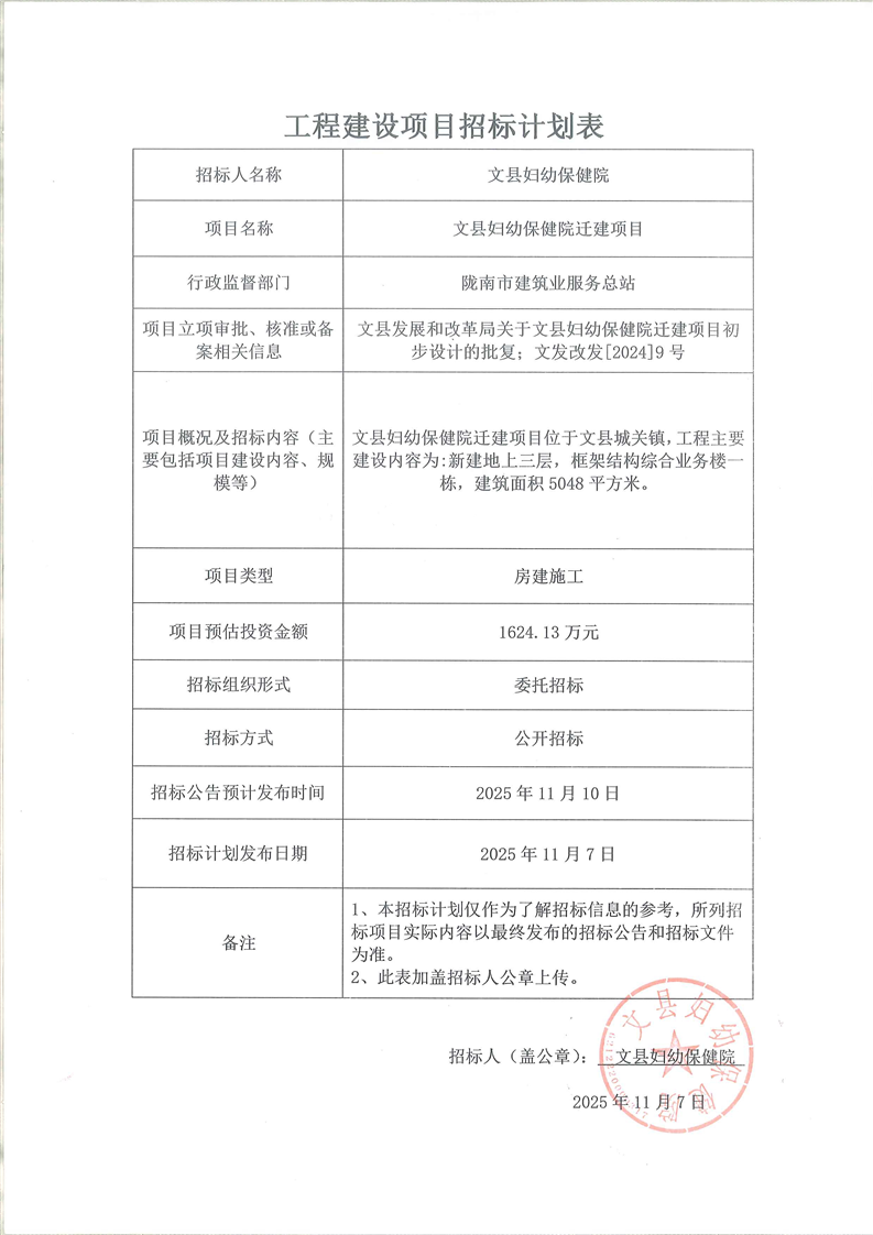 招標(biāo)計劃表—文縣婦幼保健院遷建項目.pdf
