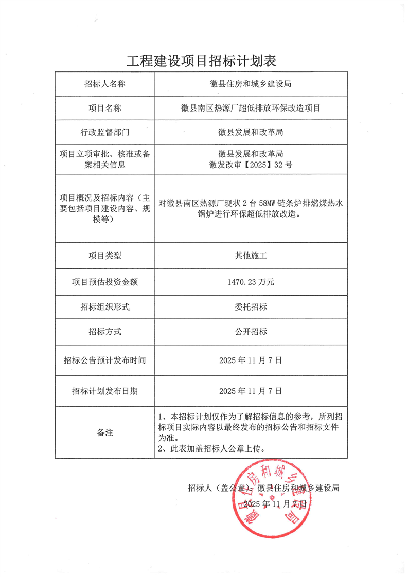 徽縣南區(qū)熱源廠超低排放環(huán)保改造項目