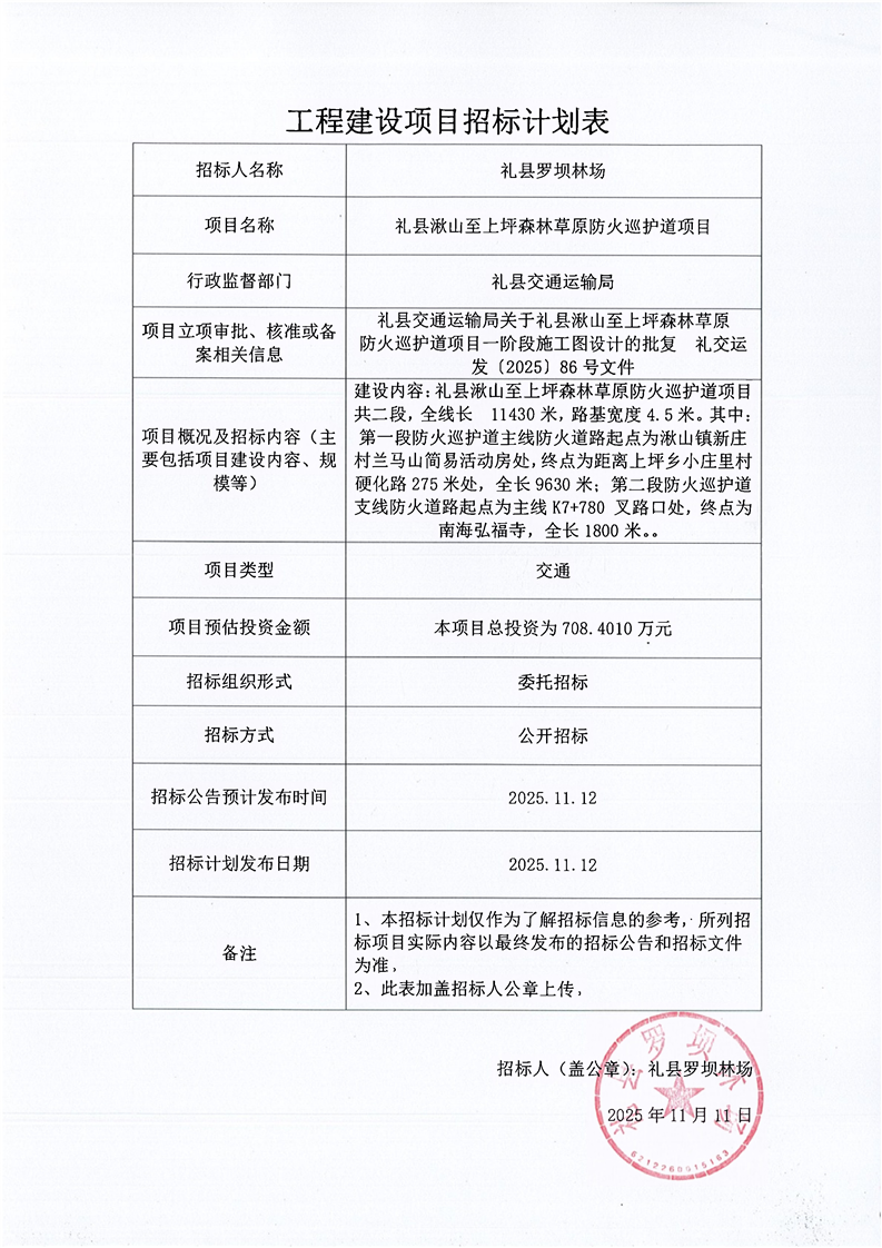 禮縣湫山至上坪森林草原防火巡護(hù)道項目